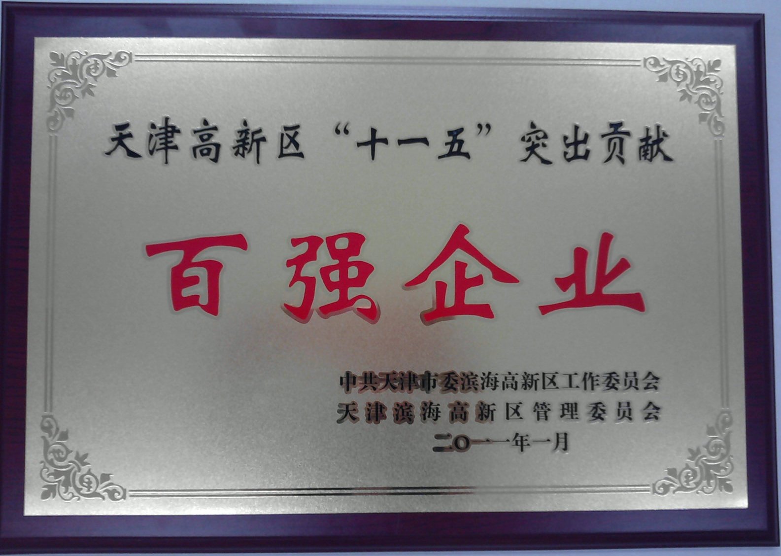 天津高新區“十一五”突出貢獻百強企業