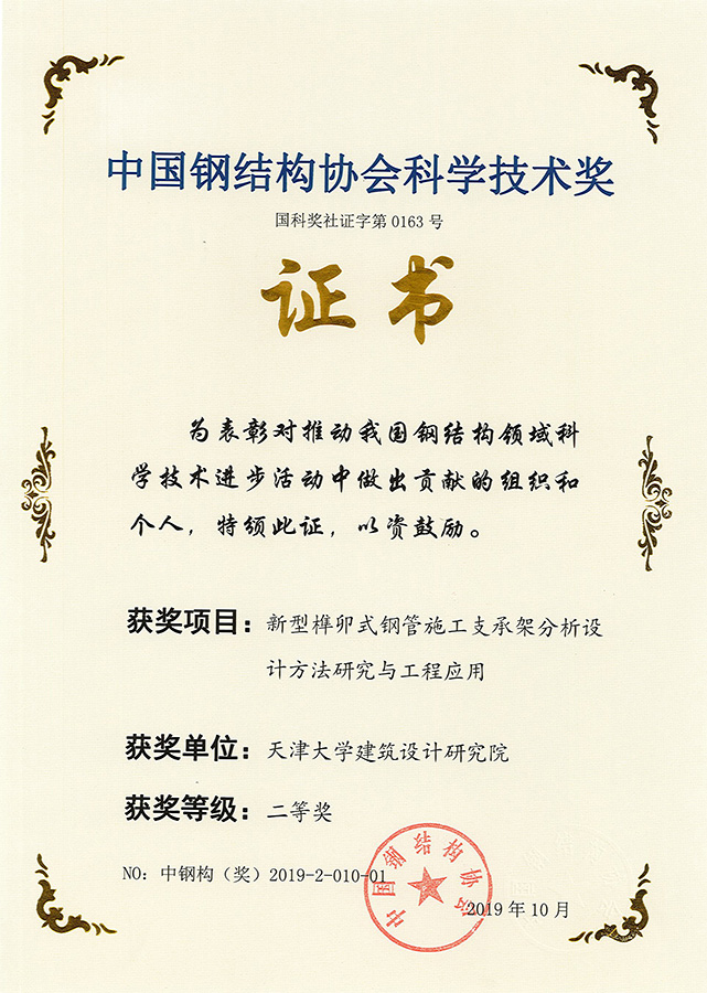 新型榫卯式鋼管施工支承架分析設計方法研究與工程應用(中國鋼結構協會科學技術獎二等獎)