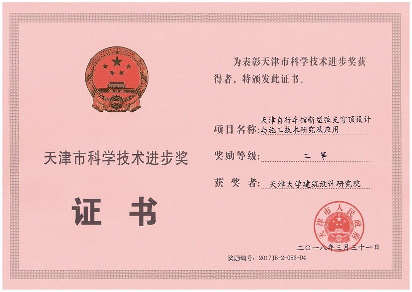 天津自行車館新型弦支穹頂設計與施工技術研究及應用(天津市科學技術進步獎二等獎)