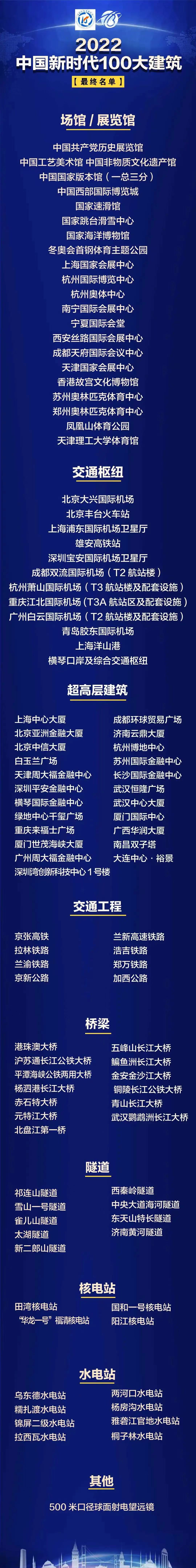 以此為契機(jī),中國(guó)科技新聞學(xué)會(huì)以中國(guó)建筑的引領(lǐng)性、示范性、影響力、傳播力、公信力為基準(zhǔn),強(qiáng)調(diào)“適用、經(jīng)濟(jì)、綠色、美觀”建筑方針的貫徹執(zhí)行,同時(shí)參考對(duì)于中國(guó)特色社會(huì)主義道路自信、理論自信、制度自信、文化自信的展現(xiàn)程度等,組織業(yè)內(nèi)專家、行業(yè)媒體就2022中國(guó)新時(shí)代100大建筑進(jìn)行評(píng)選工作。經(jīng)過(guò)公示和評(píng)審會(huì)審定,得到了業(yè)主、設(shè)計(jì)、監(jiān)理和社會(huì)各界的積極反饋和支持,最終發(fā)布了“2022中國(guó)新時(shí)代100大建筑”的評(píng)選結(jié)果。成功入選的建筑項(xiàng)目代表了中國(guó)建筑頂級(jí)的設(shè)計(jì)以及建造水平,其先進(jìn)的設(shè)計(jì)理念、卓越的創(chuàng)新精神必將引領(lǐng)中國(guó)建筑走向更加輝煌的未來(lái)。
