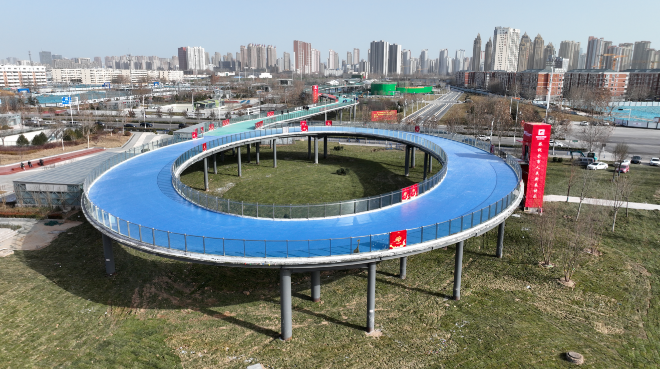 2023年春節期間,不少石家莊市民驚喜地發現,在石家莊火車站東側,一座顏色絢麗、如意造型的“彩虹橋”格外耀眼。“橋”如其名,每當夜幕降臨,“彩虹橋”化身一條飄舞的彩帶,絢爛奪目,吸引不少市民前來打卡。