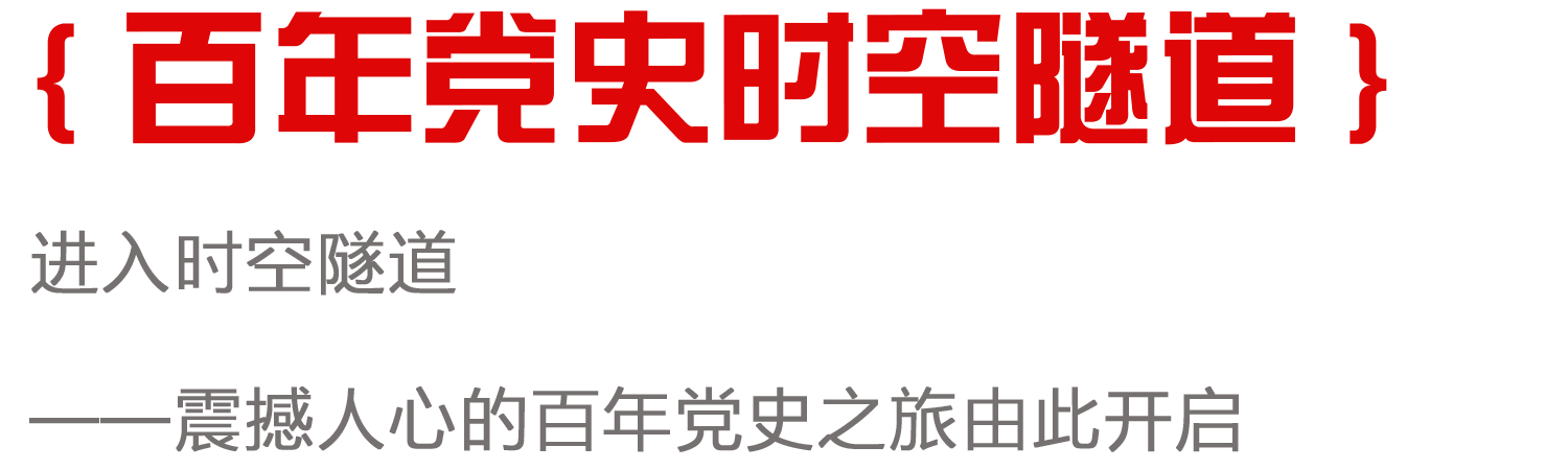進入時空隧道,參觀者駐足欣賞短片《我們》,感應門緩緩拉開LED幕墻,波瀾壯闊的百年黨史時空隧道款款鋪開,震撼人心的百年黨史之旅由此開啟。