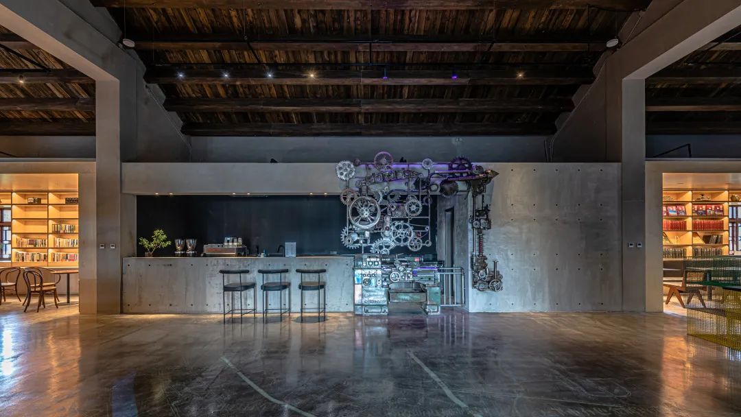 蘇聯(lián)專家樓作為咖啡館,內(nèi)部以一機床廠齒輪等歷史原物為設計元素,整體活化利用,重構城市記憶場所,喚醒城市工業(yè)記憶。