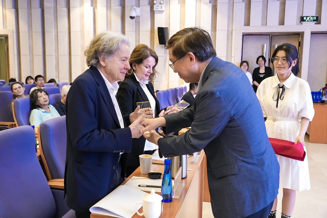 宋昆院長為包贊巴克夫婦頒發(fā)大師講堂紀(jì)念獎(jiǎng)杯