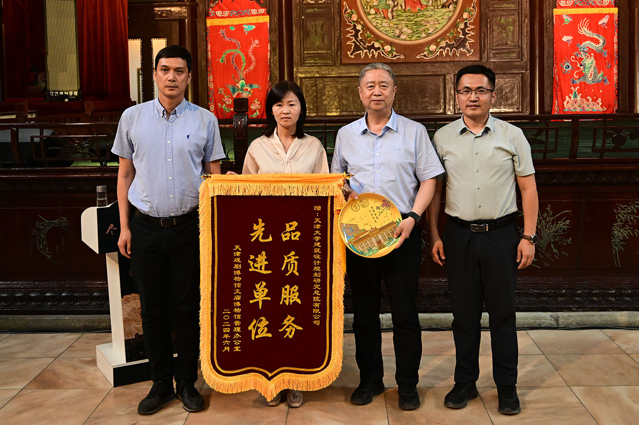 會上,廣東會館的主管單位天津戲劇博物館文廟博物館管理辦公室為天大設計總院頒發“品質服務、先進單位”錦旗。