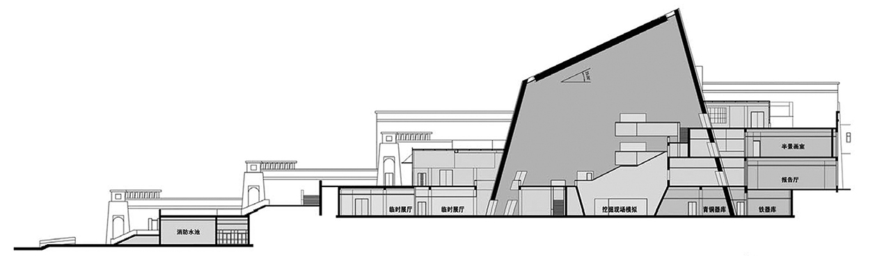 寶雞是“周秦王朝發祥地”,具有深的周秦文化。因此,設計采用周秦闕門的形制,在青銅器博物院入口設有闕門,一方面突出歷史的厚重感,另一方面暗含周秦文化之意。同時門闕以三層遞進,形成序列空間,導引著參觀者向上走進博物館。