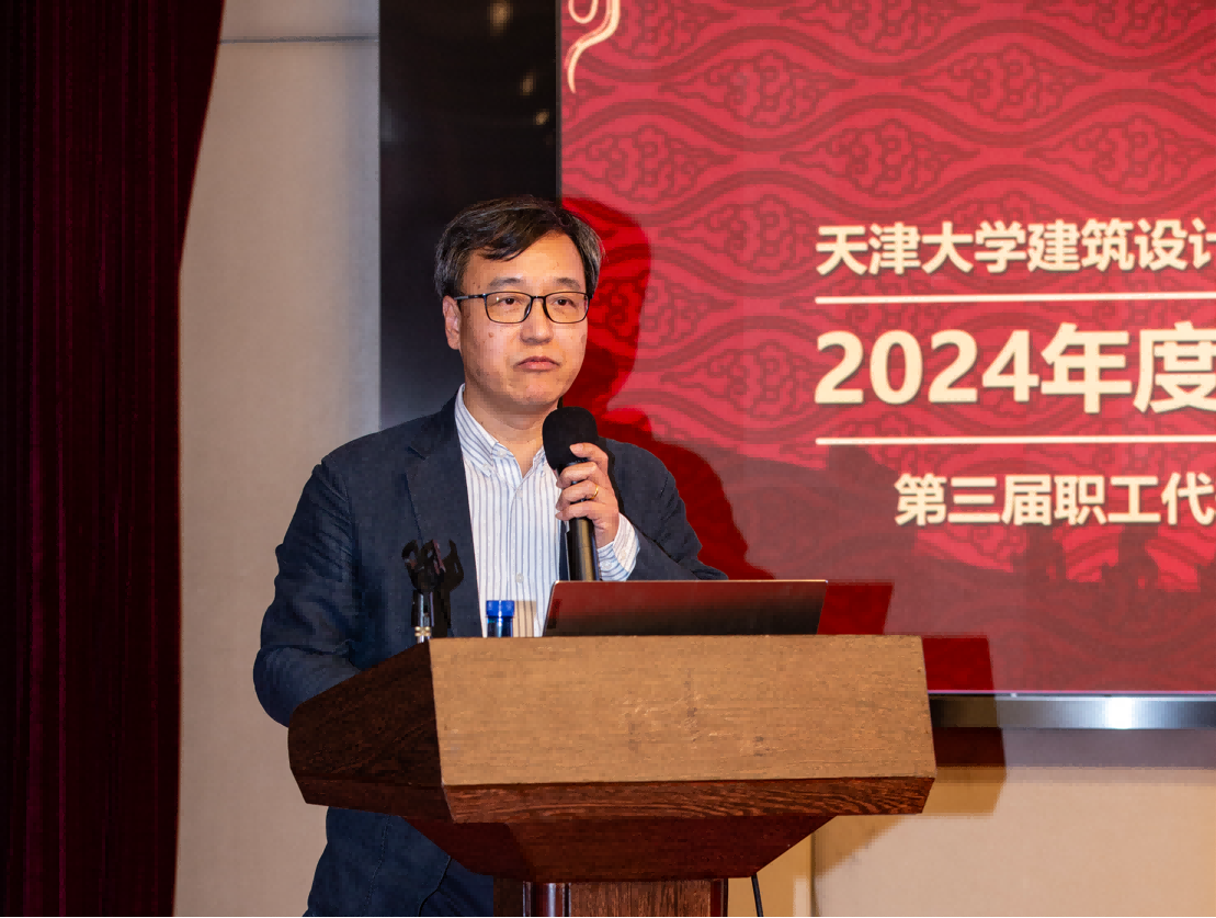 天津大學黨委常委、副校長王天友代表學校講話。他在講話中肯定了設計總院在行業收窄的形勢下取得的成績,代表學校感謝設計總院全體員工在逆境中求發展作出的努力。他指出,設計總院作為學校的一道靚麗名片,要繼續在深化與學校建筑學院等兄弟學院的協同合作機制上下功夫,在調動發揮學院的作用和互促互進中出實招、促協同、重壓實。要高度關注人工智能賦能新質生產力等未來熱點趨勢,搶抓機遇,以全球視野不斷加大市場拓展力度。王天友鼓勵設計總院要繼續保持干事創業的信心和決心,團結協作、再接再厲、再創佳績,并在農歷北方小年到來之際向設計總院全體員工提前致以新春問候。