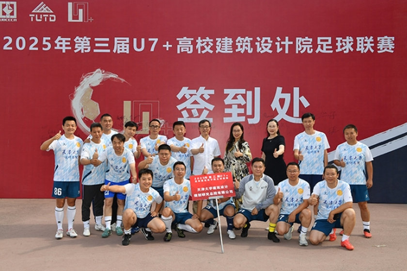 2025 年 6 月 18 日至 19 日,第三屆 U7 + 高校建筑設計院足球聯賽在太原點燃戰火。本次賽事由中國勘察設計協會高校分會主辦,太原理工大學建筑設計研究院有限公司承辦,旨在以體育為紐帶,搭建高校設計院交流平臺,推動設計人員在綠茵場上詮釋 “拼搏、協作、創新” 的精神內核。天津大學建筑設計規劃研究總院有限公司黨委、工會與科技信息部聯動籌備,以 “專業設計匠心” 賦能 “體育競技熱血”,組建 16 人精銳戰隊 —— 由總院院長諶謙掛帥帶隊,副院長賈莉、李星魁任領隊,市場經營部總監張敬擔任教練,竇玉斌出任隊長,攜各設計、職能部門骨干隊員出征賽場。