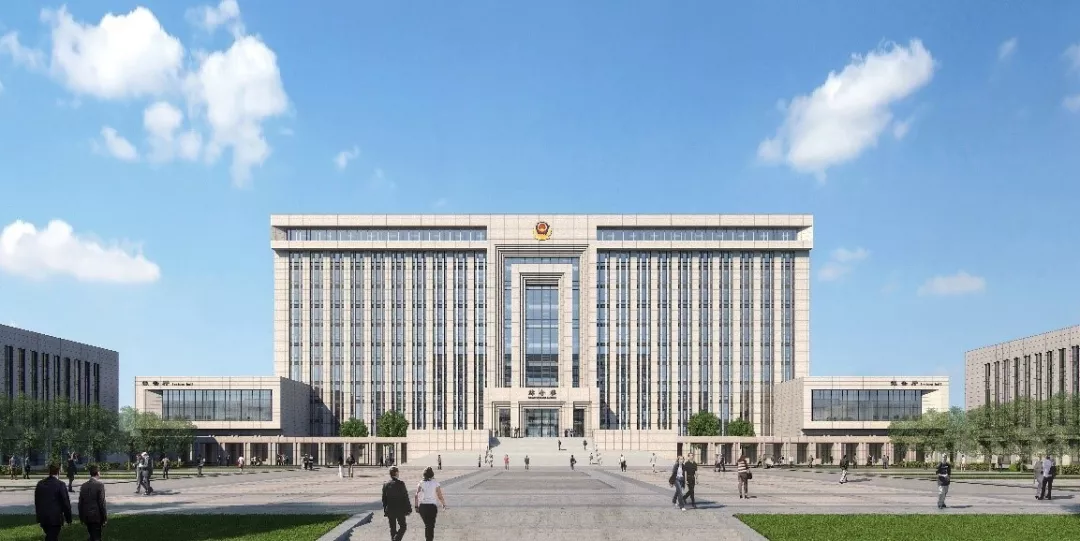 位于主軸線上的綜合樓,不僅體量最大而且在其前部設(shè)計(jì)大踏步,強(qiáng)化其主體地位。人們通過(guò)踏步拾級(jí)而上,綜合樓中央位置是一座淺色石材砌筑的通高疊澀大門(mén),莊嚴(yán)肅穆,立意“法律之門(mén)”。