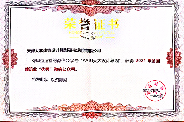 AATU天大設計總院喜獲2021年全國建筑業“優秀微信公眾號”