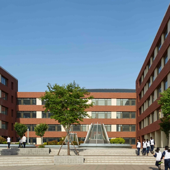 中學部設有普通教室樓、綜合試驗樓、專用教室樓、教室辦樓公、行政辦樓公、風雨操場、游泳館、會堂以及其它輔屬用房等,共設32個班,容納學生1600人。