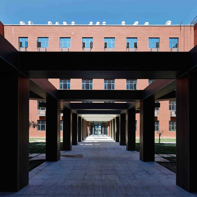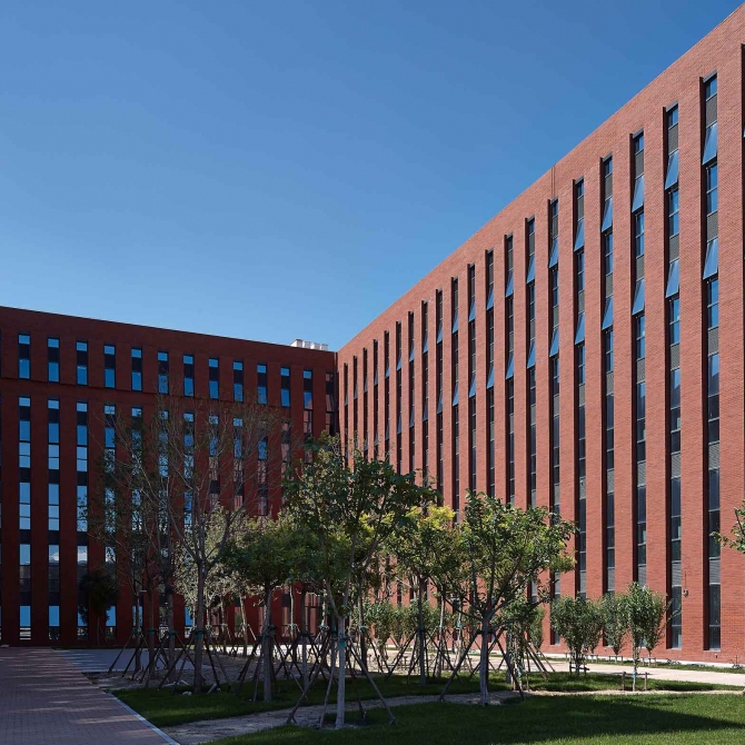 化工材料教學組團對天津大學衛(wèi)津路校區(qū)的建筑有一定的傳承,風格穩(wěn)健大氣;同時又處理得相當簡練,以豎直線條作為母題貫穿始終,簡潔現(xiàn)代。該項目在整個校園規(guī)劃體現(xiàn)了以學生活動和學生生活為中心的總體思想,一個具有人文氣息的、可持續(xù)發(fā)展的、綠色低碳的、面向未來的新型校園