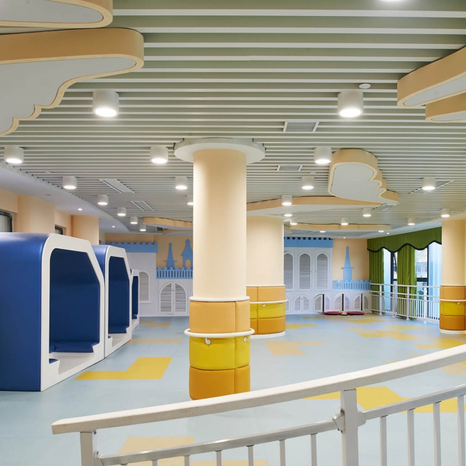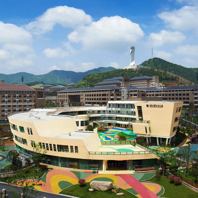 海亮國際幼兒園是一座大型寄宿制幼兒園,設計可容納500名兒童。設計基于對幼兒心理安全性與趣味性需求進行充分的響應,并關注獨特復雜地域環境的場地因素,以兒童的視角和兒童的體驗為原始出發點,以簡約而豐富的設計手法,力求創造出一個真正為兒童所喜愛的、歡樂的、安全的、并且充滿趣味的空間場所。