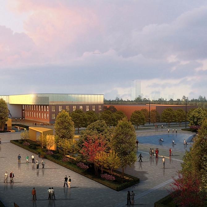 以“百年筑夢”為景觀方案主題,通過傳承歷史文脈的景觀軸線、隱喻琢玉成器的景觀形態(tài)和象征百年樹人的景觀結(jié)構(gòu)表現(xiàn)出來。設(shè)計團隊提出“一中心、兩理念”的設(shè)計思想,即“以學(xué)生為中心,注重景觀的文脈延續(xù)和生態(tài)的可持續(xù)”。