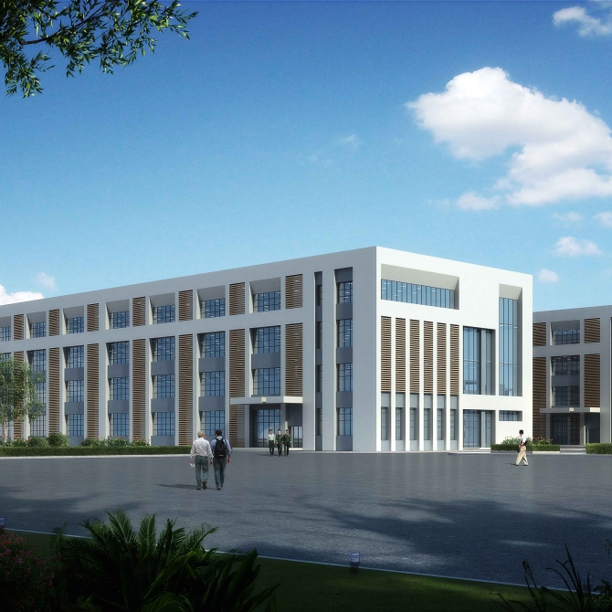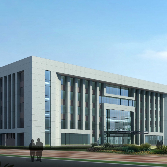 整個項目建筑外立面顏色以淺灰色調為主,采用玻璃與實墻對比的設計手法,強調豎向線條,形成莊重威嚴的建筑風格。建筑整體風格統一,單體根據使用性質變化豐富。