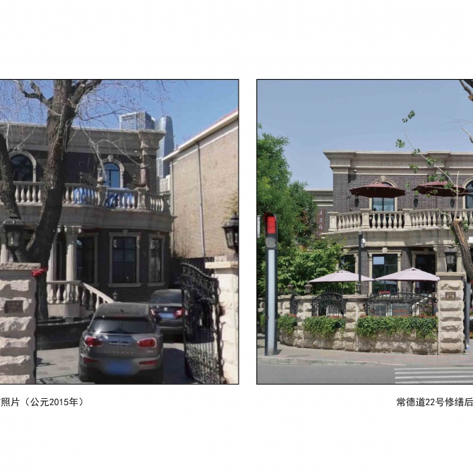 近年來(lái)市政府對(duì)五大道地區(qū)的保護(hù)力度加大,并常試使用市場(chǎng)微循環(huán)方式的方式。其中五大道地區(qū)在實(shí)踐過程中嚴(yán)格按照建筑密度不超過38%,檐口高度不超過12米,核心區(qū)不超過8米的控制要求管理各項(xiàng)新建改建工程。超低的建設(shè)量,使得街區(qū)受到較少的開發(fā)沖擊,沒有集中大規(guī)模拆建,一直以來(lái)處于微循環(huán)式更新改造狀態(tài),逐漸緩慢地増加置換小型酒吧、餐廳的功能。因此整體風(fēng)貌保護(hù)較為完好,街道格局、綠化、圍墻界面、街道小品等也受到較好地保護(hù)和控制。