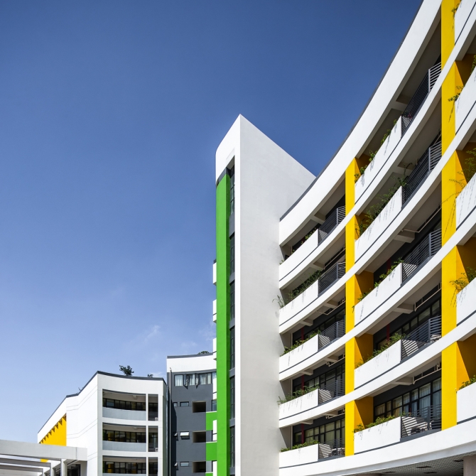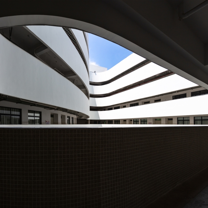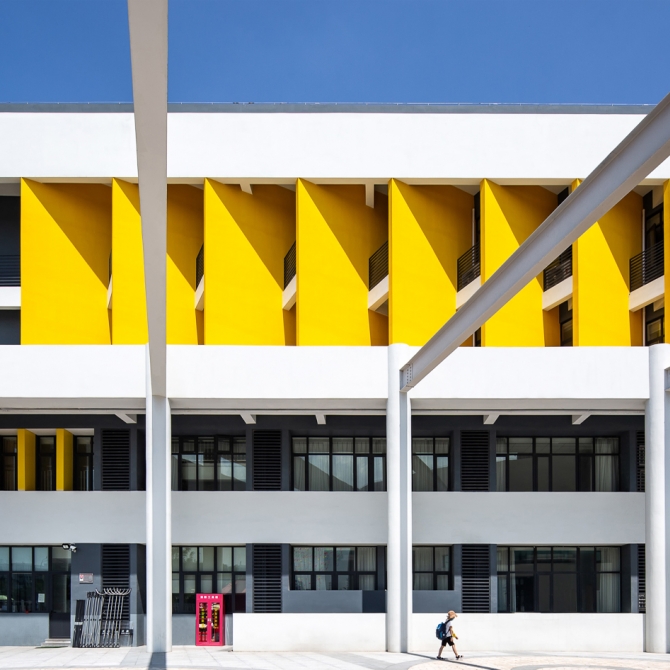 設計體現“以人為本”的理念,主要教學功能布置在綜合教學樓的1-4層,將普通教室布置在建筑南側,保證學生上課沐浴在陽光下健康
