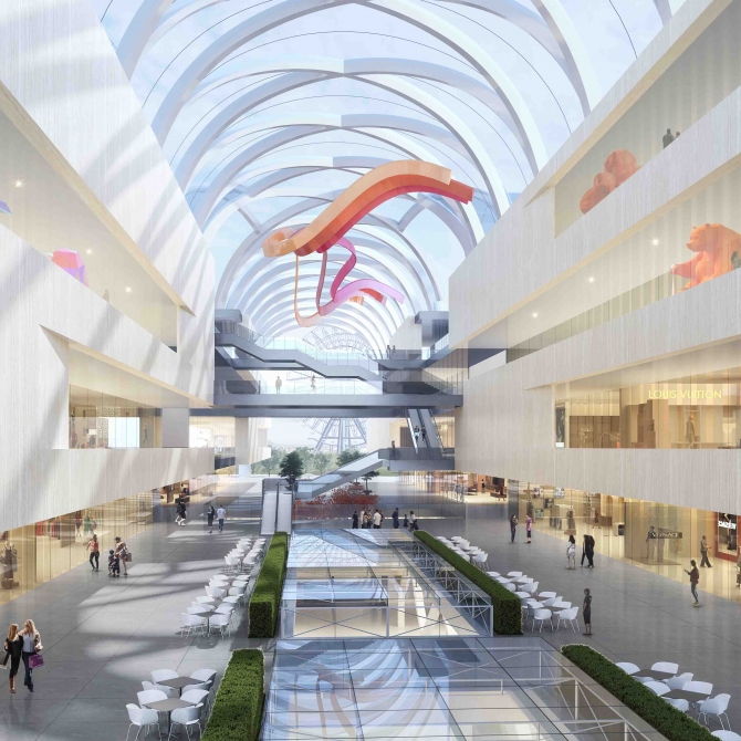 項目充分發揮地域優勢,是集休閑旅游、購物休閑、體驗和互動娛樂、交通組織等多功能于一體的綜合性歡聚樂活新領地。同時在地鐵上蓋部分設置運河博物館,結合天津百年文化積淀,解構服務文化的深層內涵,完整融合了消費文化、人文文化、國際文化、企業文化的新地標。