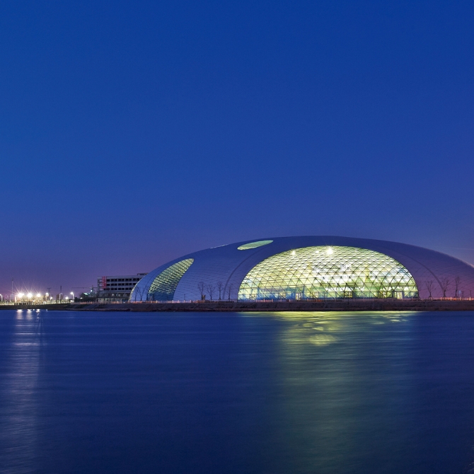 天津米立方工程位于天津市津南區小站鎮,整個建筑外形酷似國家大劇院,如同嵌入水中的一粒稻米,故得名“米立方”,是天津市最大的室內水上健身游樂中心,已成為國家5A級標準旅游景點。