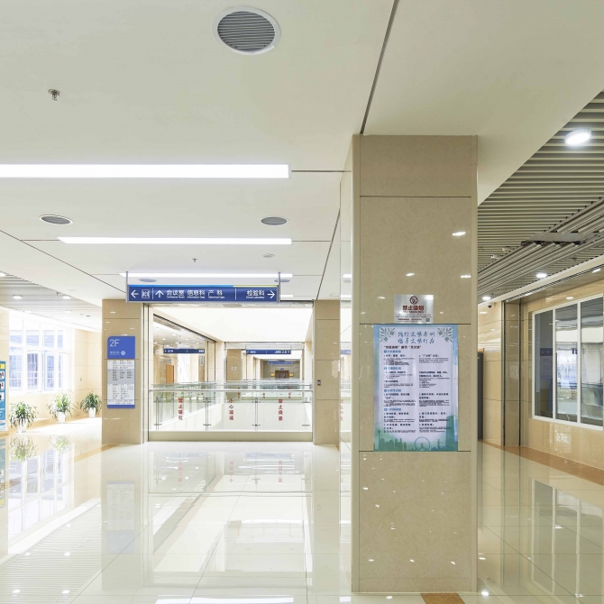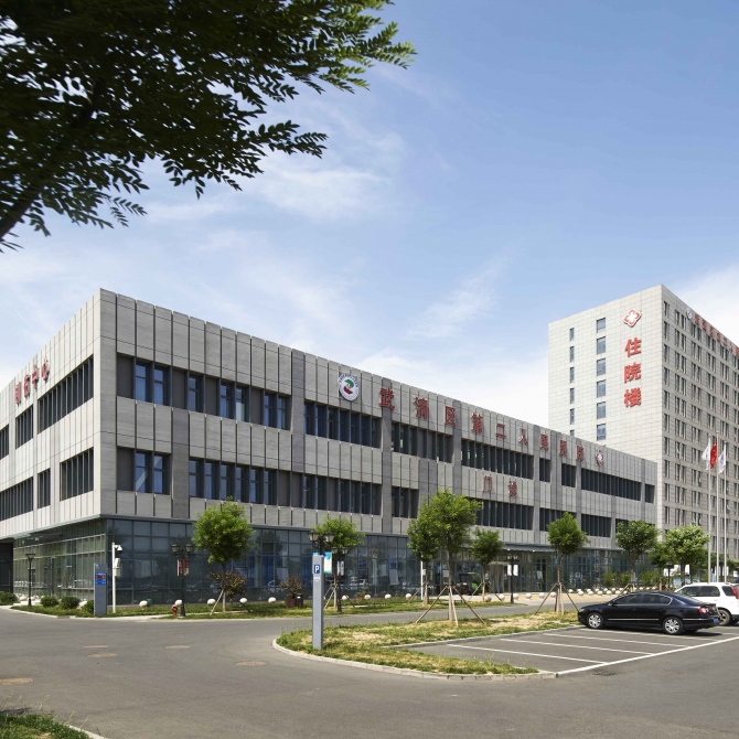 武清第二人民醫院主要含三層門診醫技樓、十一層住院樓,及單建的發熱、感染門診和動力中心。門診醫技樓按診區展開并圍合成為若干院落空間,達到良好的通風采光效果;住院樓獨立設置,與門診樓形成有機聯系,并為醫院留出發展擴建用地。
