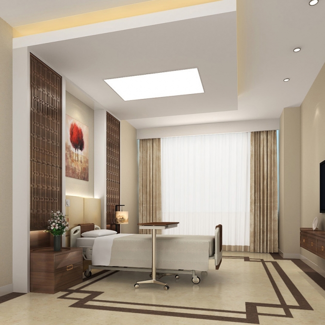 醫院的裝飾設計與常規的裝飾設計在概念上有很大的不同,這直接決定了裝飾風格的確定和裝飾材料的選擇問題。通常的裝飾裝修工程往往追求豪華的檔次、高級的裝飾材料以及炫耀的效果,而醫院裝飾設計最基本的要求和出發點是為醫療和病人康復創造一個和諧、新適和潔凈的環境,因而,醫療建筑的室內設計更加注重功能性,在裝修風格上也力求避免張揚的裝飾設計,而以簡潔、清爽為基本格調