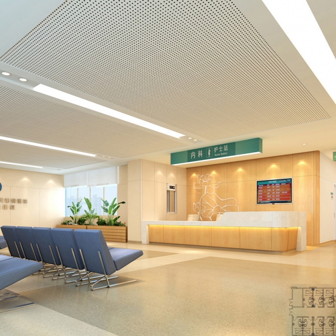 醫院由于人員比較密集,是大人流量的公共空間,因此設計上也必須與這個特點相適應,以明快的色調和采光效果,確保空間的流暢和交通便捷,使病人用最快的速度到達他要去的科室。因此,明快的設計風格可以避免不必要的視覺干擾,提高空間效率,確保醫療功能的主導地位。