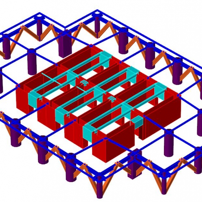本工程采用框架-核心筒+腰桁架加強層結構,框架柱下部采用鋼管混凝土柱,上部采用型鋼混凝土柱,樓板體系采用鋼-砼組合梁+鋼筋桁架樓承板。