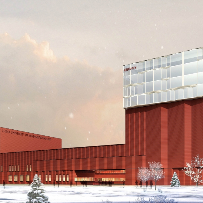 具有“礦坑”意向的活力庭院采用層層跌落的設(shè)計(jì)手法,把綜合實(shí)驗(yàn)樓的各個(gè)功能聯(lián)系整合,形成了集約科學(xué)的智慧山谷,圖書館置于綜合樓的頂部,具有最安靜和最佳的景觀視線,眺望整個(gè)校園,并成為標(biāo)志性建筑,營(yíng)造礦學(xué)高峰。